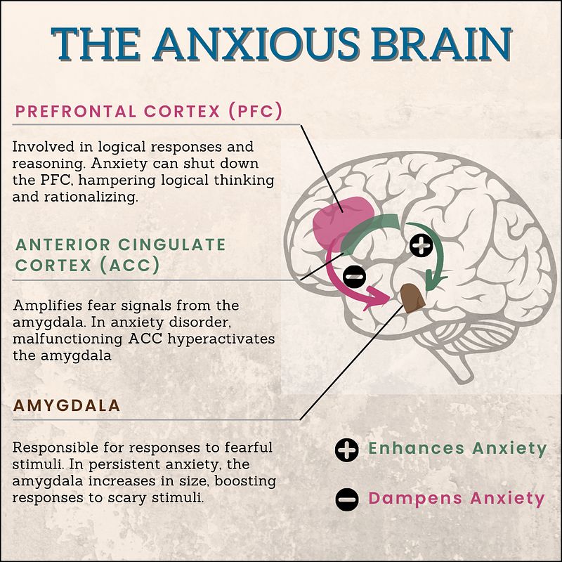 Whether someone has social anxiety, specific phobias, or generalized feelings of fear and uneasiness, anxiety disorders are real and crippling. The limbic system is overactive with a mind looping on pain and emotional discomfort (with the anterior cingulate cortex serving as the broken motor). Meanwhile, the prefrontal cortex cannot get a grip over the anxiety and thought looping, which keeps the anxious mind stuck in worrying, rather than thinking calmly and rationally.