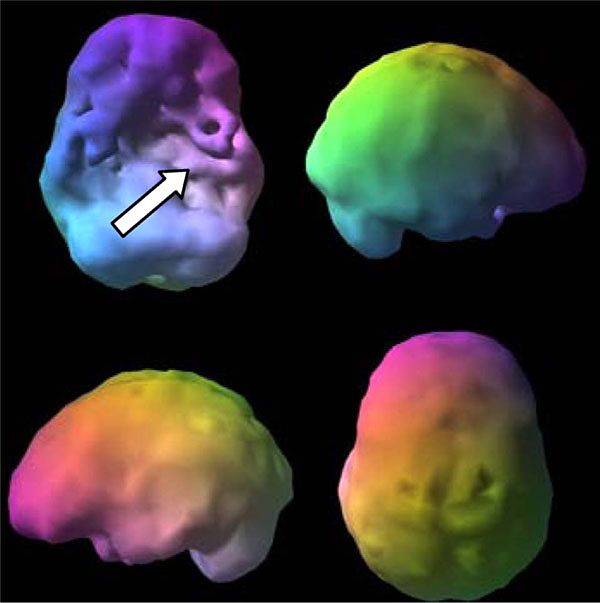 An example of an inmate's SPECT Scan: Shriveled appearance and bumps that signal an unhealthy brain, leading to an unhealthy state of mind.