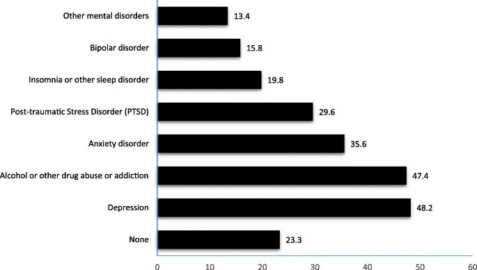 As of 2018, the majority of people experiencing homelessness have a documented mental illness or addiction problem.